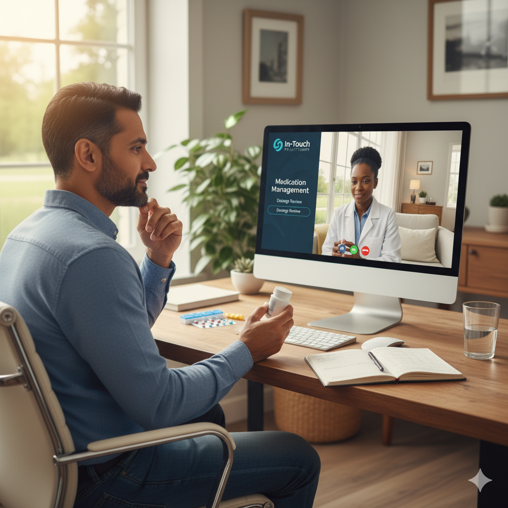 Telepsychiatry allows you to receive mental health care, including psychiatric evaluations and medication management, remotely through secure video or phone calls. It offers a convenient way to get professional help from the comfort of your home.